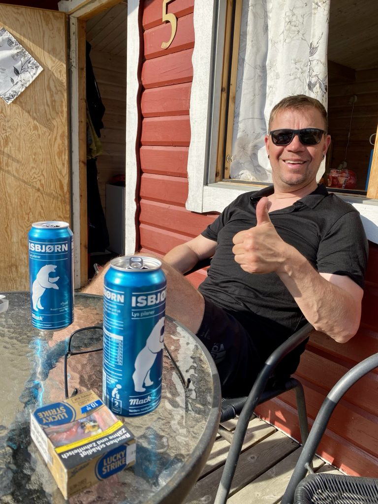 Nach nur 150km aber 8,5 Stunden unterwegs sind wir an unserm Campingplatz angekommen. Bei 25 Grad war es ein muss erstmal eine kleine Erfrischung zu öffnen. Eigentlich war ich der Meinung das T-Shirt und kurze Hose auf der Tour überflüssig sind. Sind ja in Norwegen. Jetzt bin ich aber froh diese dabei zu haben.
