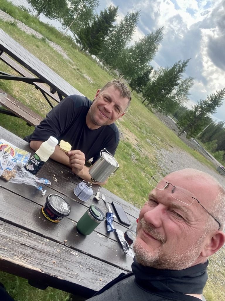 Wir haben unsere Planung bezüglich der Heimreise ein wenig neu justieren müssen. Eigentlich war geplant bis Trondheim zu fahren und dann noch den Geirangerfjord und den Trollstigen mitzunehmen. Aber das Wetter macht uns einen Strich durch die Rechnung. Von Süden nähert sich ein großes Regengebiet, dass bis nach Schweden reicht. Heftiger Starkregen wurde angekündigt. Also werden wir diese Sehenswürdigkeiten erst beim nächsten Besuch in Norwegen erkunden können. Wir sind daher heute morgen gegen 7.15 Uhr gestartet und wollen die Ostseeküste in Schweden erreichen, bevor das Regengebiet über uns hinweg zieht. Gestern Abend haben wir noch ein sehr nettes Pärchen kennengelernt und erfahrungsgemäß wurde der Abend lang. Nichtsdestotrotz saßen wir wie geplant morgens auf unseren Bikes und machten uns auf nach Schweden.